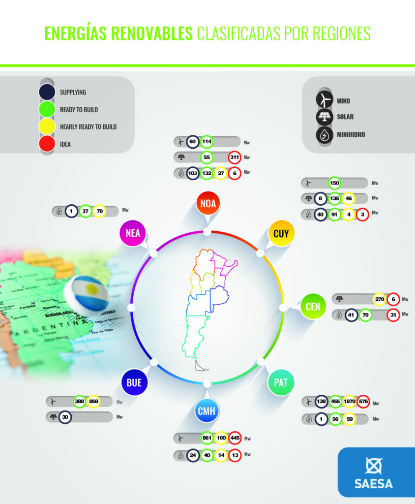 La energía eólica cubrirá en dos frentes para Argentina: las granjas eólicas abastecerán un 30% y los molinos en el mar para aprovechar esa potencia del viento sería del 20%. La Patagonia y la provincia de Buenos Aires juegan un rol fundamental, también confirmado por la última licitación del Plan RenovAr para diversificar la matriz energética del país.